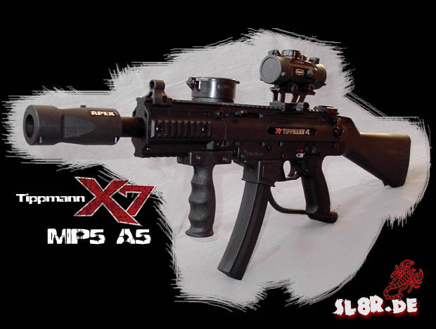 | Tippmann X5 MP5 Varianten Hier gibts eine Sammlung meiner MP5 Umbauten auf der Tippmann X7 Basis. Dank des modularen X7 Systems, lassen sich grundsätzlich schonmal so ziehmlich alle Waffentypen wie ein Legokasten mit Serienteilen von Tippmann|SpecialOPS zusammenstecken. Dennoch gibts es einige Details zu verbessern oder zu ergänzen. Eine Auflistung dieser Teile und eine Beschreibung folgen irgendwann... |